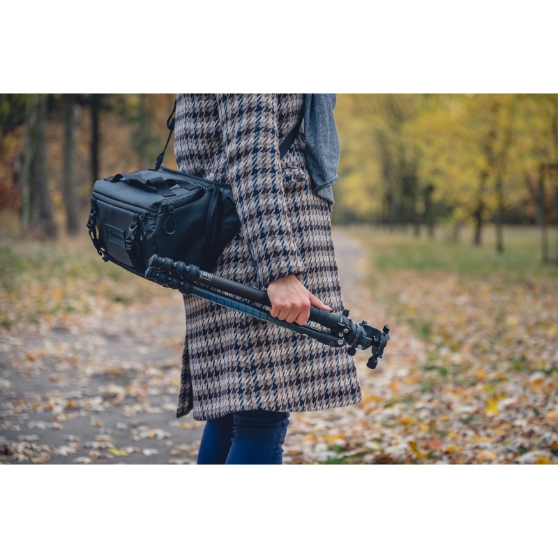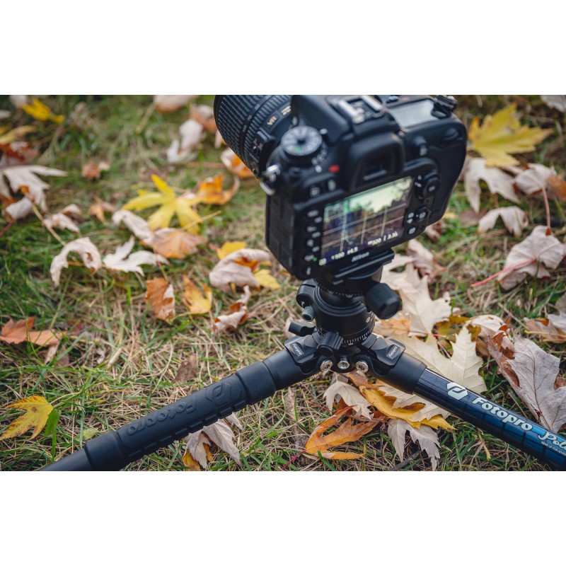 Statyw posiada trójstopniowy mechanizm nachylenia nóg, które składają się z czterech sekcji, blokowanych za pomocą wygodnego w użyciu systemu obrotowych zacisków. Obrót o 45° wystarczy, aby w ciągu sekundy przystosować się do nierówności terenu. Brak standardowej kolumny centralnej umożliwia wykonanie zdjęć z „żabiej” perspektywy. Oryginalne ustawienie pozwala też na wygodne fotografowanie w skali makro. Stabilne ułożenie statywu tuż nad powierzchnią ziemi to często kluczowy element przygotowań do zdjęć małych obiektów.
