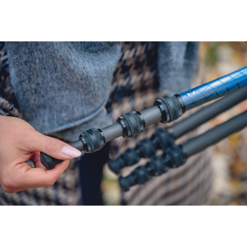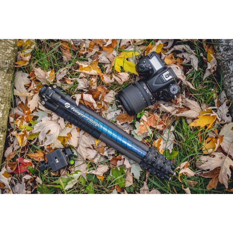 Statyw Fotopro P-4 został wykonany z odpornego na niesprzyjające warunki atmosferyczne włókna węglowego. Karbon jest niezwykle lekki i wytrzymały. Maksymalny udźwig statywu wynosi 10 kg, przy zaledwie 770 g wagi własnej! Ruchoma platforma, na której instaluje się głowicę to profesjonalne rozwiązanie pozwalające dodatkowo wypoziomować kadr w zakresie ±9°. Ponadto jedną z 3 nóg statywu wykończono gumową okładziną, zapewniającą komfortową pracę podczas chłodnych lub bardzo gorących dni, kiedy cała konstrukcja przejmuje temperaturę otoczenia. Wszystkie te usprawnienia sprawiają, że Fotopro sprawdza się w każdych warunkach!