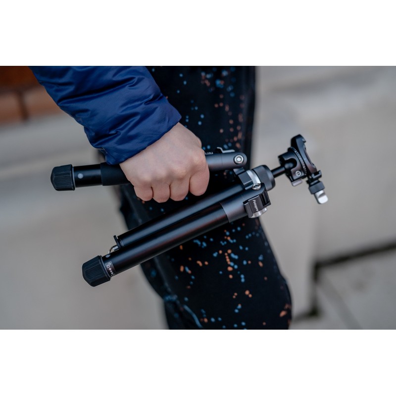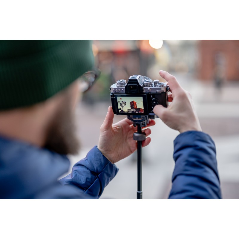 Kiedy wyruszasz w podróż na poszukiwanie idealnych kadrów, dobrze mieć ze sobą lekki statyw, który zmieści się w plecaku. Fotopro Free-1 to idealny wybór dla vlogerów i fotografów, którym zależy na ultralekkości i kompaktowych wymiarach. Statyw waży tyle, co niewielki bezlusterkowiec z kitowym obiektywem (800 g), a po złożeniu mierzy jedynie 25 cm. Gdy znajdziesz już miejsce, w którym warto zrobić zdjęcie lub nagrać kilka ujęć video, odkryjesz jego ukryte możliwości. Po wysunięciu każdej z 5-sekcyjnych nóg oraz rozłożeniu kolumny centralnej statyw osiągnie imponującą długość 152,5 cm!
