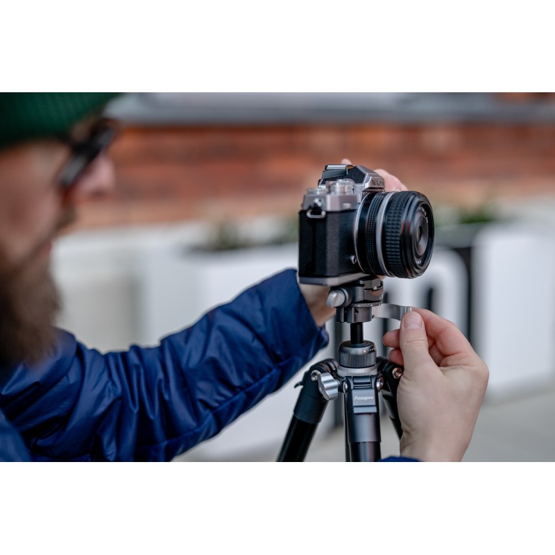 Fotopro Free-1 to ultralekki statyw w kolorze szarym, który z łatwością zmieścisz w plecaku. Oferuje wysokość roboczą w przedziale od 25, aż do 152,5 cm. Dzięki systemowi obrotowych zacisków rozłożysz go w ciągu kilku sekund. To idealny wybór dla fotografów, filmowców, vlogerów i podróżników, którzy cenią sobie ultramobilność i liczą każdy gram bagażu. Unikalna konstrukcja pozwala wyjąć teleskopową kolumnę centralną i z łatwością zamienić ją w monopod o maksymalnej długości 84 cm. Statyw wyposażono też w dodatkowy otwór montażowy, poziomicę, antypoślizgowe nóżki oraz system kontroli panoramy. W zestawie znalazł się również karabińczyk oraz uchwyt na smartfon kompatybilny ze standardem Arca-Swiss.