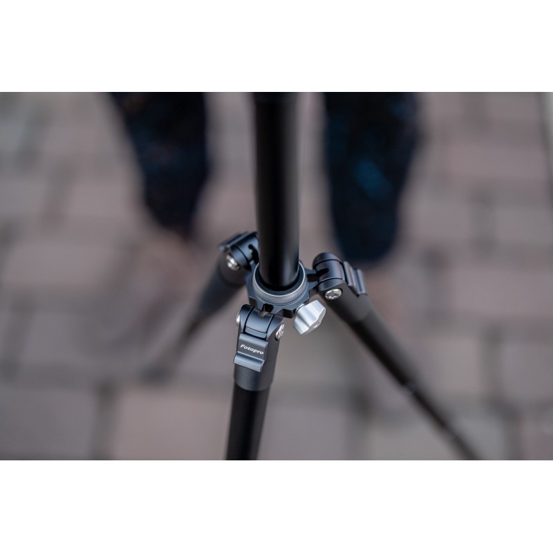 Statyw posiada trójstopniowy mechanizm nachylenia nóg, które składają się z 5 sekcji, blokowanych za pomocą wygodnego w użyciu systemu obrotowych zacisków. W razie potrzeby możesz odwrócić kolumnę centralną i ustawić aparat niemal przy samej ziemi. Takie rozwiązanie idealnie sprawdzi się w fotografii makro. Statyw może zostać obciążony za pomocą plecaka, który przypniesz za pomocą dołączonego do zestawu karabińczyka. Dzięki antypoślizgowym nóżkom Fotopro Free-1 z powodzeniem wykorzystasz zarówno w plenerze, jak i w warunkach domowych.