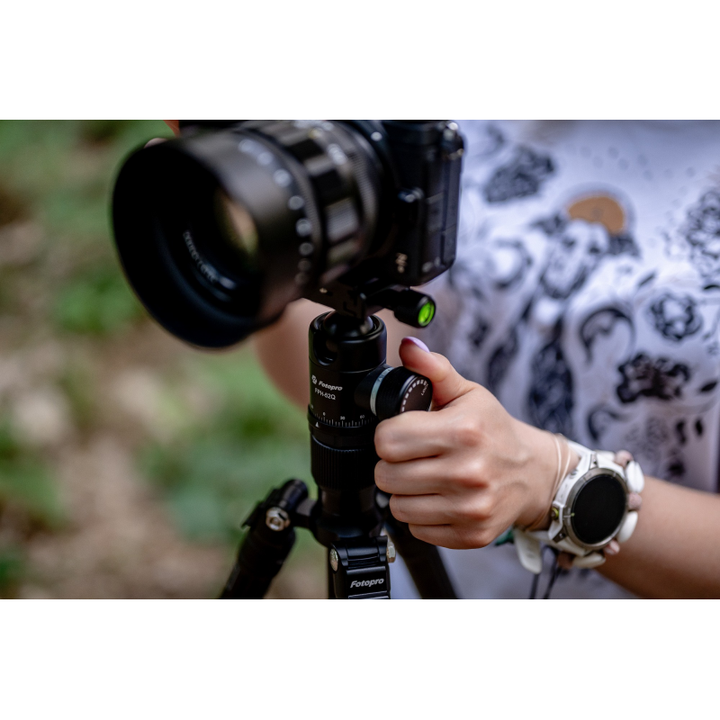 Głowica kulowa FPH-52Q charakteryzuje się wyjątkową mobilnością, precyzją i uniwersalnością. Idealnie sprawdzi się zarówno w przypadku szybkiej fotografii sportowej, jak i przy statycznych krajobrazach oraz portretach. FPH-52Q posiada dwa niezależne i wygodne w użyciu pokrętła. Jedno z nich pozwala płynnie regulować siłę zacisku blokującego kulę. Drugie pokrętło kontroluje ruch obrotowej podstawy głowicy. Naniesiono na nią skalę 360°, która ułatwi precyzyjne panoramowanie. Głowica jest kompatybilna z płytkami szybkiego montażu wykonanymi w popularnym standardzie Arca-Swiss. Trzy poziomnice pozwolą idealnie ustawić aparat i uzyskać perfekcyjne kadry w każdych warunkach terenowych!