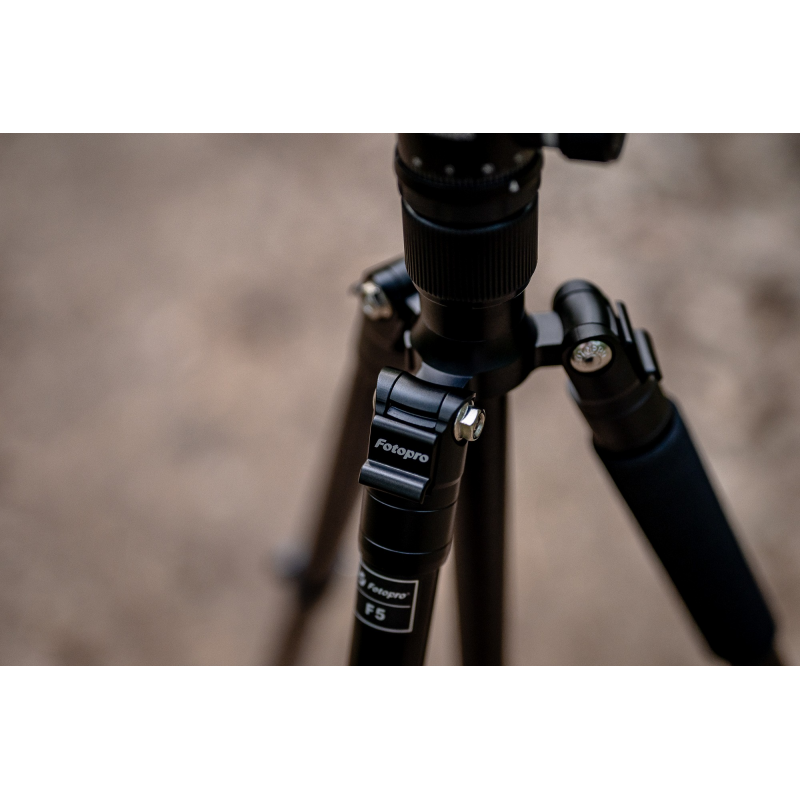 Cztery sekcje nóg statywu Fotopro F5 blokowane są za pomocą niezawodnego i szybkiego w użyciu systemu zacisków "Flip Lock". Takie rozwiązanie pozwoli w ciągu kilku sekund precyzyjnie dostosować ich długość do bieżących potrzeb i szybko przygotować się do pracy z kamerą lub aparatem. Wysokość robocza statywu może wynieść od 42,8 cm do 158,5 cm. Zakres ten umożliwi tworzenie kreatywnych ujęć z różnej perspektywy.