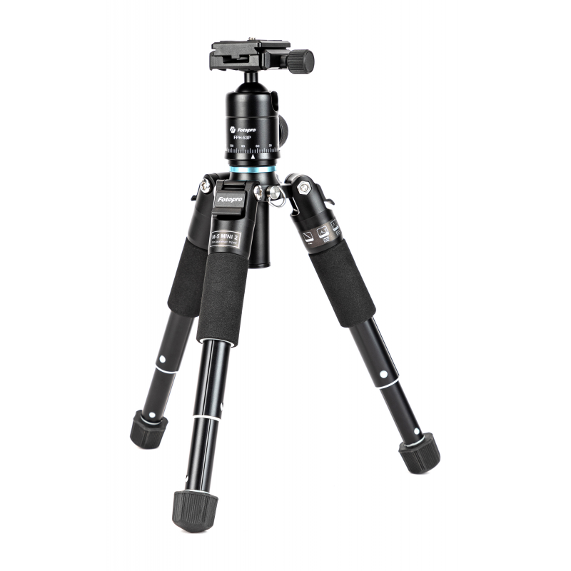 Dzięki głowicy kulowej FPH-53P oraz płytce szybkiego montażu kompatybilnej z systemem Arca-Swiss, statyw Fotopro M-5 mini 2 zapewnia szybkie i wygodne ustawianie aparatu. 2-sekcyjna, odłączalna kolumna centralna umożliwia wykonywanie zdjęć z niskiego poziomu, co idealnie sprawdzi się w fotografii produktowej lub podczas wykonywania zdjęć roślin lub owadów. Regulacja kąta nachylenia nóg oraz piankowe uchwyty zapewniają jeszcze większy komfort użytkowania.