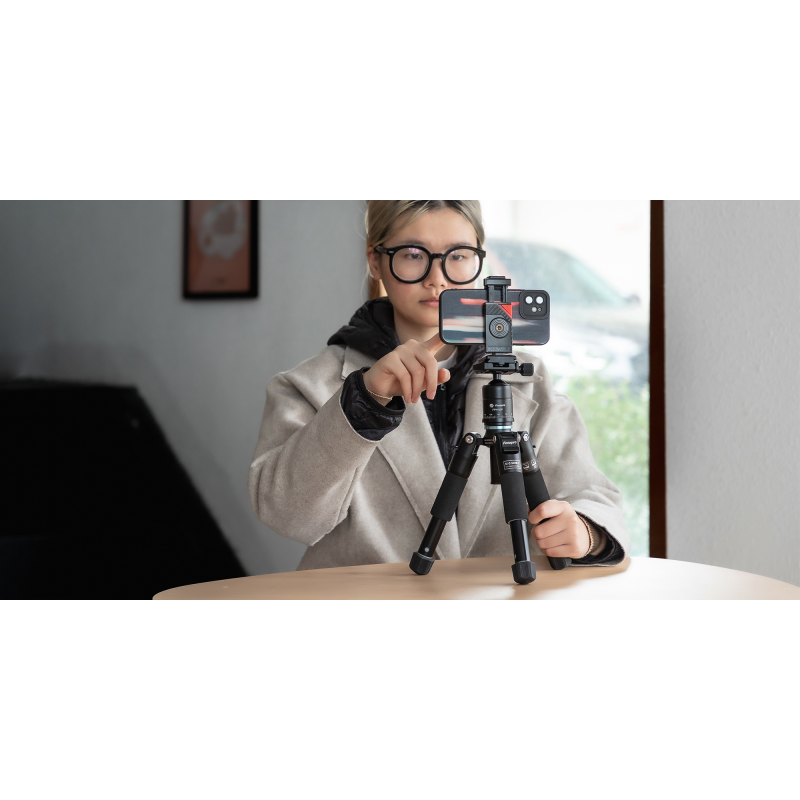 Statyw Fotopro M-5 mini 2 został zaprojektowany z myślą o łatwej obsłudze i wszechstronności zastosowań. Możliwość podłączenia uchwytu na smartfon (z gwintem 1/4" lub wspierającego standard Arca-Swiss) sprawia, że jest on idealnym narzędziem nie tylko dla profesjonalnych fotografów, ale także dla influencerów, vlogerów i kreatywnych twórców działających w mediach społecznościowych. Głowica z gwintem 3/8” oraz blokada platformy sprawiają, że wymiana sprzętu fotograficznego jest szybka i bezproblemowa, co z pewnością pomoże w pełni skupić się na łapaniu idealnych kadrów.