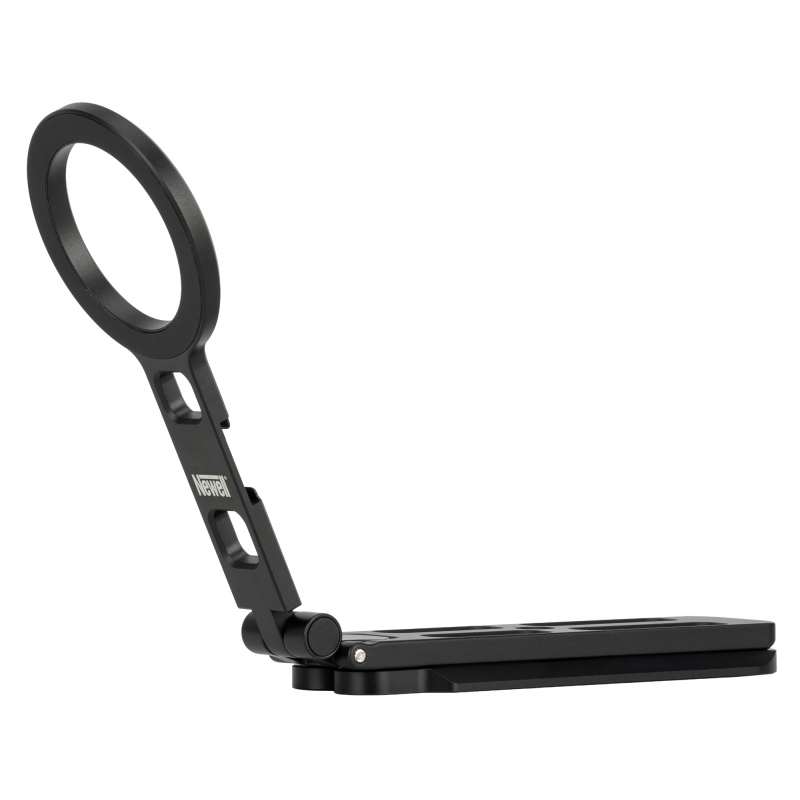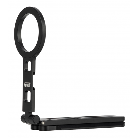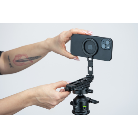 Po złożeniu wszystkich nóżek statyw Newell MagSafe M-Stand zmienia się w kompaktową szynę w standardzie Arca-Swiss z odchylanym pierścieniem MagSafe. To rozwiązanie, które docenisz szczególnie wtedy, gdy często pracujesz na statywach i głowicach foto-video wspierających ten standard. W praktyce wystarczy wsunąć M-Stand w zacisk i zablokować – bez dodatkowych płytek, bez kombinowania z adapterami i bez dokładania kolejnych elementów do zestawu. Dzięki temu możesz błyskawicznie przełączać się między ujęciami z ręki a pracą na statywie, zachowując porządek, szybkość działania i najlepszą ergonomię.