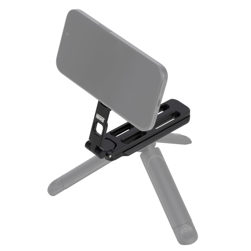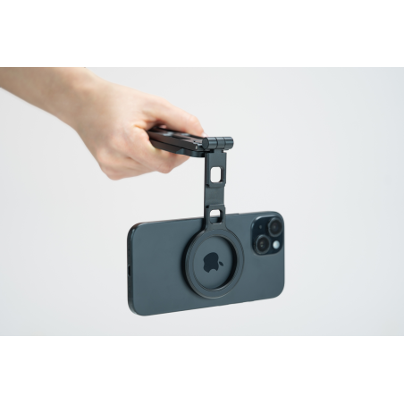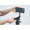 Statyw Newell z uchwytem MagSafe M-Stand może pełnić też funkcję małej „bazy" pod bardziej rozbudowany zestaw foto-video. Pod mocowanie MagSafe umieszczono gniazdo zimnej stopki, do którego łatwo podepniesz dodatkowe akcesorium. To wygodny sposób, żeby rozszerzyć swój setup o system bezprzewodowej transmisji dźwięku, niewielką lampę LED czy inne kompaktowe urządzenie, bez dokładania kolejnych zacisków i adapterów. W efekcie całość pozostaje uporządkowana, szybka w obsłudze i zawsze gotowa do pracy.