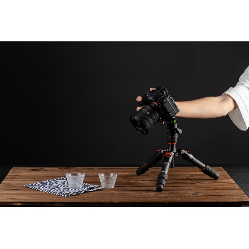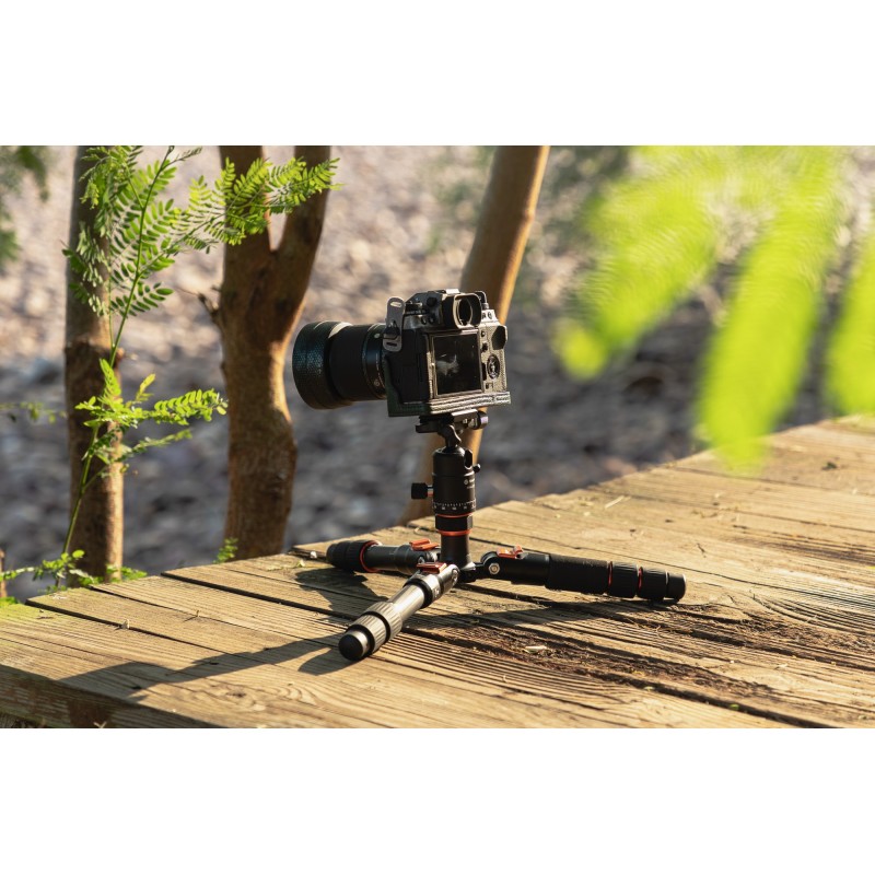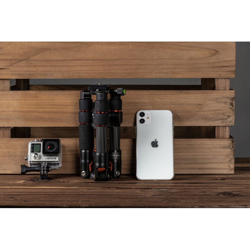 Statyw Fotopro X-go mini 2 to niezastąpione narzędzie dla podróżujących fotografów, influencerów, vlogerów lub osób nagrywających przy biurku. Dzięki swoim kompaktowym wymiarom jest niemal tak poręczny jak telefon komórkowy. Mimo zaledwie 640 gramów wagi zapewnia solidną podstawę dla sprzętu foto-video o wadze do 8 kg. Dzięki temu możesz cieszyć się stabilnością i niezawodnością, gdziekolwiek się znajdujesz.