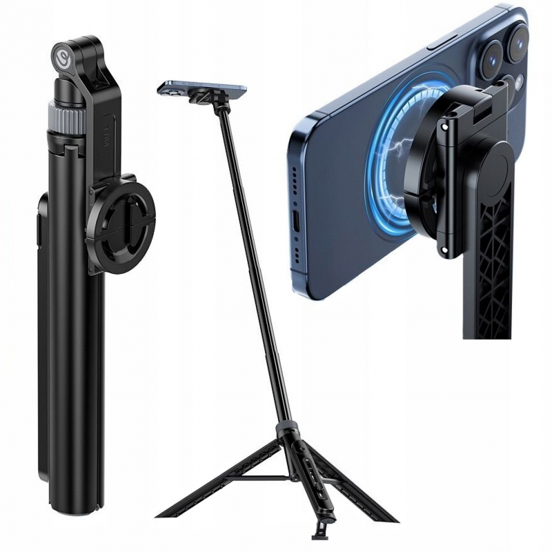 Ulanzi TT88 to nowoczesne, wielofunkcyjne narzędzie dla twórców treści, vlogerów i każdego, kto ceni sobie elastyczność w kadrowaniu. Dzięki wielu trybom pracy możesz używać go jako selfie sticka, statywu podłogowego i uchwytu do ujęć z góry. Unikalny tryb "Mantis Mode" umożliwia też montaż na krawędzi stołu. Magnetyczne mocowanie MagSafe zapewnia błyskawiczną instalację kompatybilnych smartfonów. Inne urządzenia zamocujesz za pomocą tradycyjnego zacisku. Teleskopowy wysięgnik (30-144 cm) i pilot Bluetooth (do 30 m zasięgu) to rozwiązania, które dodatkowo rozszerzają możliwości tej konstrukcji. 2 mocowania typu zimna stopka umożliwiają montaż dodatkowego oświetlenia czy mikrofonu. W zestawie kabel USB-A / USB-C do ładowania pilota.
