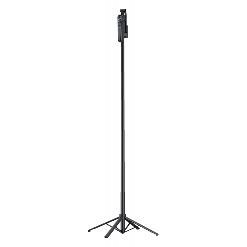 Telesin P3-MS-03 to inteligentny statyw z elektroniczną głowicą. Specjalny moduł z kamerą rozpoznaje twarz, automatycznie śledzi wybraną osobę i utrzymuje ją w kadrze. Głowica porusza się w obrębie osi panoramowania w lewo lub w prawo. Gest złączonych palców uruchamia śledzenie, gest otwartej dłoni je zatrzymuje. Pilot Bluetooth o zasięgu do 9 metrów umożliwia sterowanie najważniejszymi funkcjami aparatu w smartfonie. Odchylany uchwyt na smartfon pozwala filmować w pionie lub poziomie. Na szczycie głowicy znajdziesz też gwint 1/4", gdzie w łatwy sposób zainstalujesz aparat lub kamerę sportową. Statyw oferuje do 162 cm wysokości. Po złożeniu cała konstrukcja mierzy jedynie 31,7 cm. W zestawie etui transportowe i kabel do ładowania.