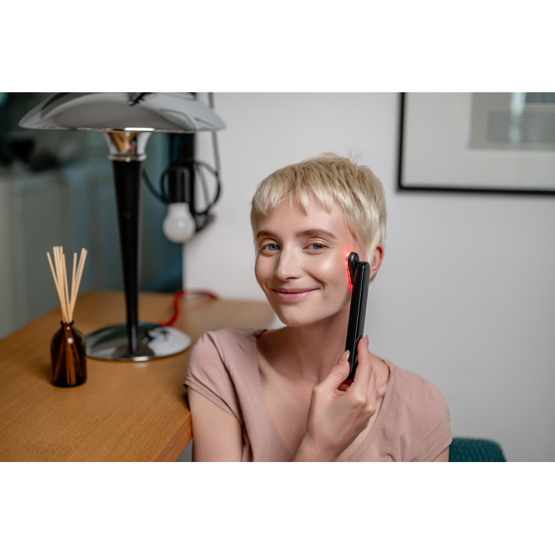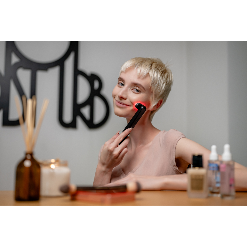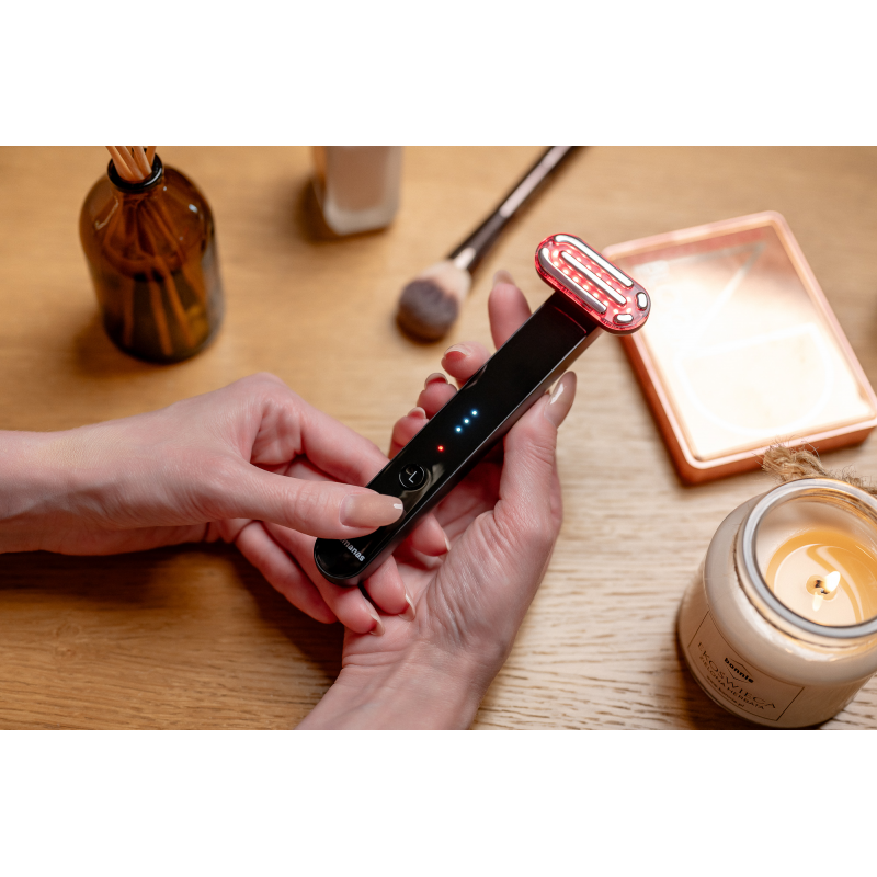 Masażer Humanas Aurora pozwala regularnie korzystać z dobrodziejstw terapii czerwonym światłem. Jego promienie wnikają w głąb skóry, aktywując mitochondria i przyspieszając regenerację komórek. Światło o długości fali 630 nm stymuluje również produkcję kolagenu, co skutkuje wygładzeniem zmarszczek, redukcją przebarwień oraz poprawą ogólnej kondycji skóry. Codzienne stosowanie masażera pozwoli Ci uzyskać promienny i młodszy wygląd, bez konieczności odwiedzania gabinetów kosmetycznych.