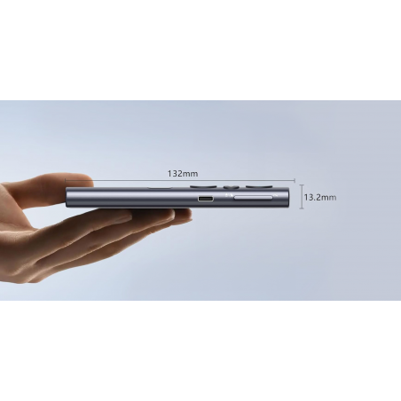 Wewnątrz pilota Norwii N95s BLE ukryto wydajny akumulator litowo-polimerowy o pojemności 300 mAh. Dzięki niemu urządzenie zachowa gotowość do pracy nawet przez 120 dni. Pełne naładowanie zajmuje zaledwie 1-2 godziny i odbywa się przez port USB-C. Podczas ładowania na wyświetlaczu OLED pojawia się symbol błyskawicy, a procent naładowania aktualizuje się w czasie rzeczywistym. Gdy akumulator jest w pełni naładowany, wyświetlacz pokazuje "100%". Długi czas pracy i widoczny wskaźnik poziomu dostępnej energii sprawiają, że nie musisz pamiętać o regularnym ładowaniu urządzenia. To idealne rozwiązanie dla osób często podróżujących i prowadzących wykłady w różnych miejscach.