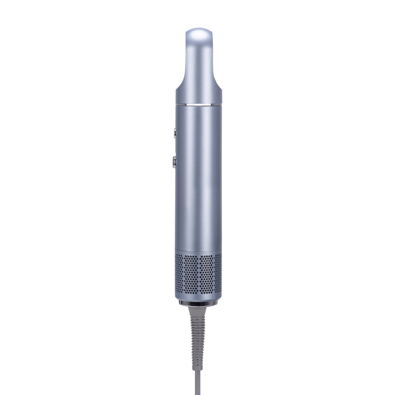 Suszarka Humanas AirTouch HD-AT05 wyróżnia się nietypową konstrukcją. Na pierwszy rzut oka bardziej przypomina lokówkę niż klasyczne urządzenie do suszenia włosów. Brak wystających na boki elementów sprawia, że jej forma jest smukła i podłużna, co znacząco ułatwia przechowywanie – zarówno w domowej szafce, jak i w torbie podróżnej. To praktyczne rozwiązanie dla osób, które cenią porządek i kompaktowe akcesoria.