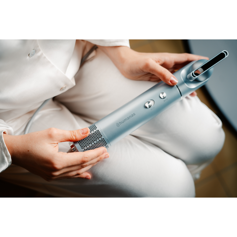 Humanas AirTouch HD-AT05 to suszarka, która zadba nie tylko o szybkie wysuszenie włosów, ale także o ich kondycję. Technologia jonizacji generuje miliony jonów ujemnych, które neutralizują elektryzowanie się kosmyków i sprawiają, że włosy stają się gładsze oraz łatwiejsze w stylizacji. Efekt? Fryzura, która układa się naturalnie i wygląda świeżo bez względu na porę dnia. Jony ujemne pomagają również zatrzymać wilgoć wewnątrz włosa, dzięki czemu zachowują one sprężystość i miękkość. Z Humanas AirTouch HD-AT05 możesz cieszyć się efektem zdrowych, lśniących włosów jak po wyjściu z salonu fryzjerskiego – każdego dnia.