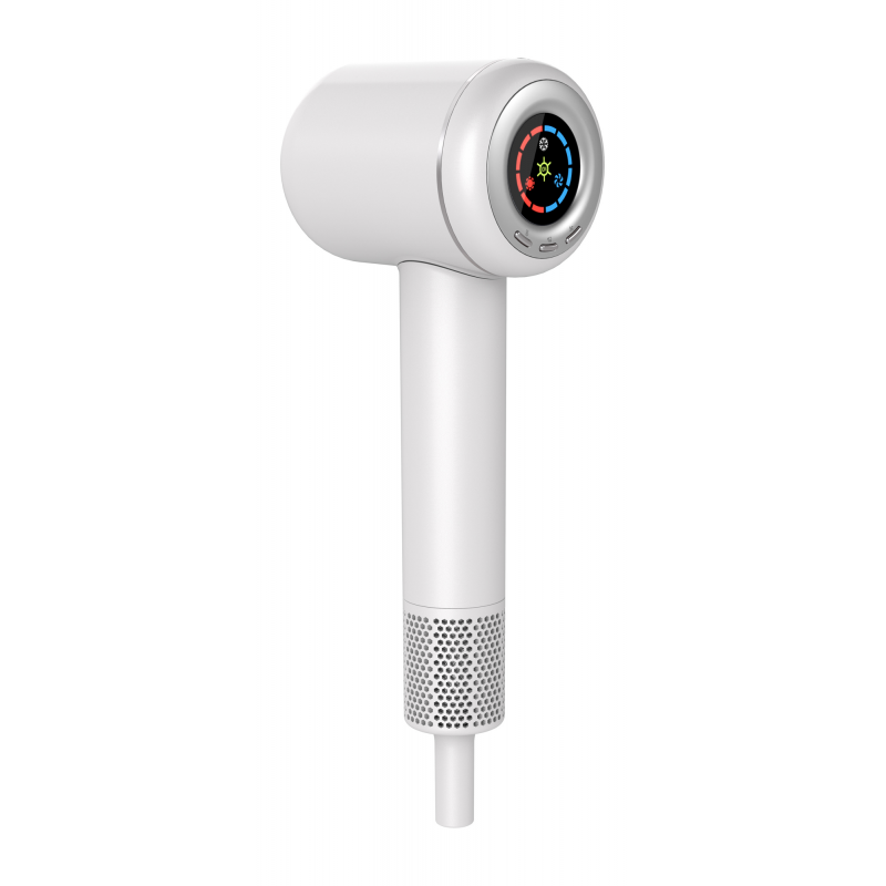 Nowoczesny, podświetlany ekran sprawia, że obsługa suszarki Humanas AirTouch HD-AT06 jest wyjątkowo intuicyjna. Wyraźne oznaczenia pozwalają szybko sprawdzić aktualne ustawienia temperatury, mocy nawiewu oraz aktywnych funkcji. Dzięki temu masz pełną kontrolę nad procesem suszenia i stylizacji. Ekran nie tylko zwiększa komfort użytkowania, ale także podkreśla nowoczesny, minimalistyczny charakter urządzenia.