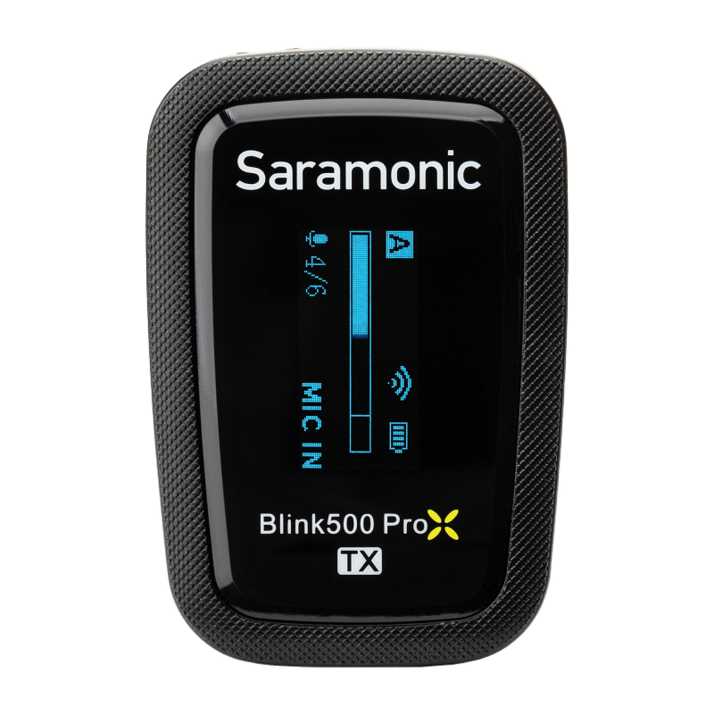 Nadajnik Saramonic ProX TX do systemu Blink500 ProX wyposażono w duży podświetlany ekran. Kontrola ustawień jest dzięki temu jeszcze wygodniejsza! Na wyświetlaczu sprawdzisz m.in. takie parametry jak naładowanie akumulatora, poziom wzmocnienia sygnału, zasięg oraz stan łączności.