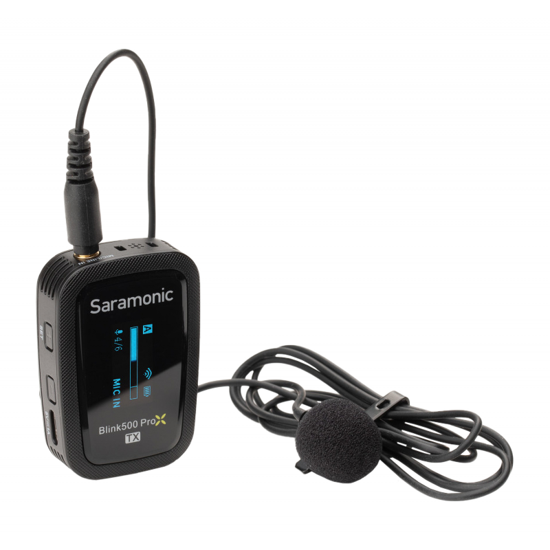 Saramonic ProX TX to nadajnik zaprojektowany z myślą o systemie Blink500 ProX. Będzie idealnym wyborem dla twórców treści, vlogerów i dziennikarzy. Jest on kompatybilny z odbiornikami Blink500 ProX RX, RXDi i RXUC. Oferuje świetną jakość dźwięku, z zakresem przenoszenia 20 Hz - 20 KHz i stosunkiem sygnału do szumu wynoszącym 84 dB. Dzięki zasięgowi do 100 metrów oraz imponująco niskiej latencji (8 ms) urządzenie zapewnia niezawodną transmisję dźwięku bez zakłóceń. Ergonomiczny klips umożliwia łatwe przypięcie do ubrania, a wbudowany mikrofon oraz możliwość podłączenia mikrofonu krawatowego (w zestawie) zapewniają elastyczność w różnych sytuacjach nagraniowych. Wyświetlacz OLED ułatwia kontrolę ustawień, a jedno ładowanie zapewnia aż 10 godzin pracy.
