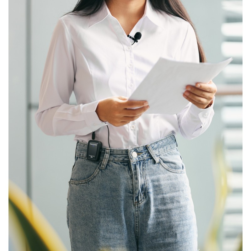 Każdy z nadajników Saramonic Blink500 ProX TXR oferuje 8 GB wbudowanej pamięci. Dzięki temu nie potrzebujesz dodatkowego rejestratora dźwięku, aby móc utrwalić swoje pliki audio. Dostępna przestrzeń na dane wystarczy, aby uwiecznić nawet do 24 godzin nagrań. Niezależnie od tego, czy jesteś w podróży, czy pracujesz w studiu, z tym zestawem do bezprzewodowej transmisji dźwięku zyskujesz możliwość rejestracji dźwięku bezpośrednio za pomocą nadajników. Saramonic Blink500 ProX TXR może więc pełnić rolę przenośnego dyktafonu, awaryjnego backupu, narzędzia pozwalającego zapisać dodatkowy dźwięk otoczenia lub Twojego podręcznego notatnika audio.
