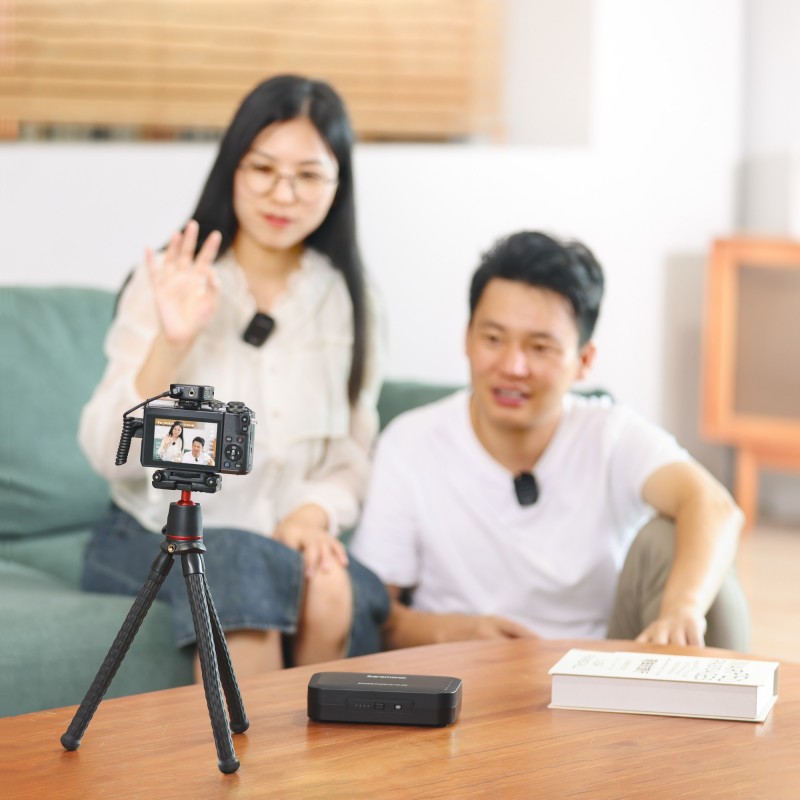 W zestawie znajdziesz też wysokiej jakości mikrofony krawatowe. Będzie to idealny wybór dla osób, którym zależy na tym, aby w kadrze nie było widać nadajników. Takie rozwiązanie pozwoli nagrywać dźwięk jeszcze bliżej mówiących osób.
