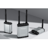 Cyfrowa transmisja danych w zakresie fal od 2404 do 2476 MHz to gwarancja wygodnej pracy z dźwiękiem, bez żadnych problemów z sygnałem. Jeśli nagrywasz na otwartej przestrzeni, nadajnik i odbiornik mogą znaleźć się w odległości aż 100 metrów od siebie, a dźwięk wciąż nie będzie narażony na zakłócenia. W zestawie znajdziesz również specjalne anteny, które po połączeniu z mikroportami można ustawiać w zakresie 360º. W każdej chwili można je również odpiąć od nadajników i odbiornika, co ułatwi bezpieczny i wygodny transport.