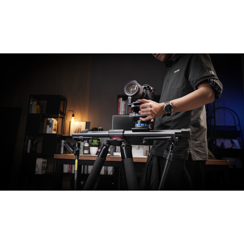 Model M700 to doskonały kompromis między mobilnością a zakresem ruchu. Przy długości 469 mm oferuje aż 770 mm płynnego przesuwu kamery, co sprawia, że idealnie sprawdza się zarówno w dynamicznych ujęciach, jak i precyzyjnych timelapse’ach. Dzięki swojej wszechstronności jest doskonałym wyborem dla filmowców, którzy szukają sprzętu o większym zasięgu, ale wciąż kompaktowego i łatwego do transportu.