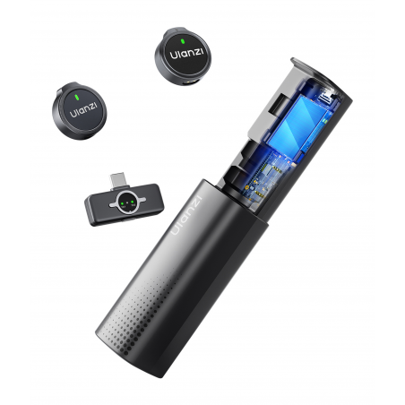 Zestaw Ulanzi A21 wykorzystuje pasmo 2,4 GHz do bezprzewodowej transmisji dźwięku, zapewniając stabilne połączenie na odległość do 100 metrów na otwartej przestrzeni. To znacznie więcej niż oferują klasyczne rozwiązania Bluetooth, dlatego system świetnie sprawdzi się podczas nagrań eventowych, plenerowych vlogów, pracy w dużych wnętrzach oraz transmisji na żywo realizowanych z większej odległości. Stabilna łączność zapewnia komfort pracy także w bardziej wymagających warunkach.