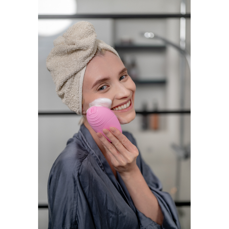 Dookoła dysz, z których wydobywa się świeża piana, rozmieszczono dziesiątki miękkich silikonowych wypustek, które zapewniają delikatną i skuteczną pielęgnację skóry. Dzięki nim urządzenie dociera do każdego zakamarka twarzy, efektywnie usuwając zabrudzenia, martwe komórki naskórka oraz resztki makijażu. Podczas zabiegów silikonowe wypustki pozwalają również masować skórę, pobudzając krążenie i wspomagając procesy regeneracyjne. To idealne rozwiązanie dla osób pragnących kompleksowej pielęgnacji – od głębokiego oczyszczenia po odprężający masaż, który pozostawia skórę świeżą i promienną.