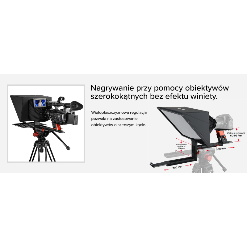 Desview TP170 pozwala w wygodny sposób pracować nie tylko z tabletami. Urządzenie oferuje wyjątkową elastyczność dzięki możliwości montażu zewnętrznych ekranów lub monitorów komputerowych do 17 cali. Możesz podłączyć je później do swojego smartfona (Android/iOS) lub komputera (Windows), co pozwala na wyświetlanie tekstu z różnych źródeł. Pendrive, na którym znajdziesz odpowiednie oprogramowanie, został dołączony do zestawu. Ten teleprompter sprawdzi się idealnie w profesjonalnych studiach, gdzie wykorzystuje się większe ekrany dla jeszcze lepszej czytelności tekstu.