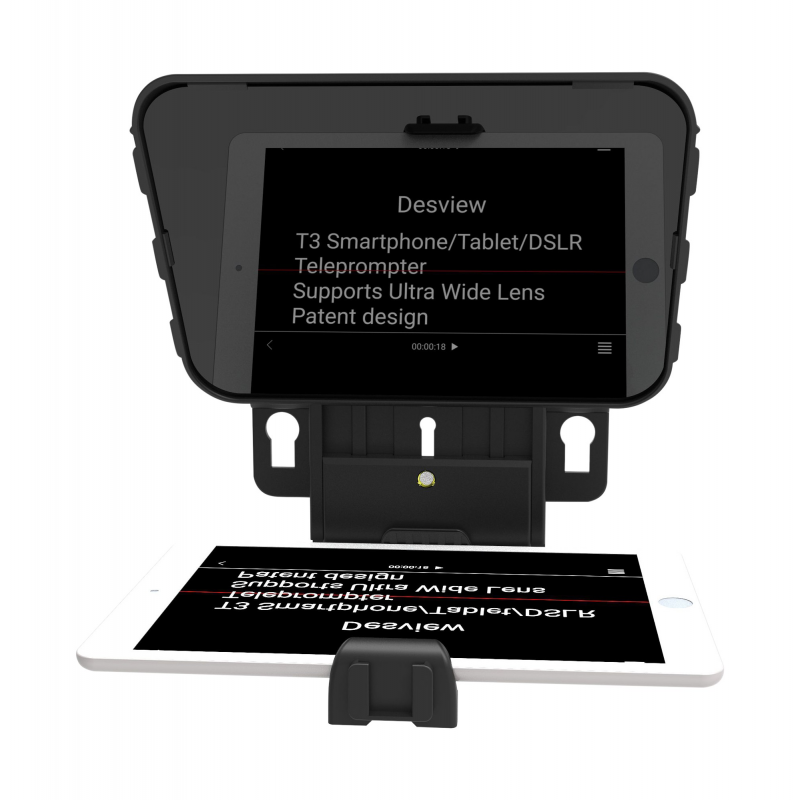 W teleprompterze Desview T3 zastosowano wysokiej jakości 26-warstwowe szkło rozdzielające wiązkę światła (70/30). Zapewnia ono wysoką przepuszczalność na poziomie 97%. Dzięki takim parametrom nie występuje efekt podwójnego odbicia, a tekst czytany z telepromptera jest wyraźny i wygląda niemal tak samo, jak gdybyś czytał(a) go prosto z ekranu smartfona.