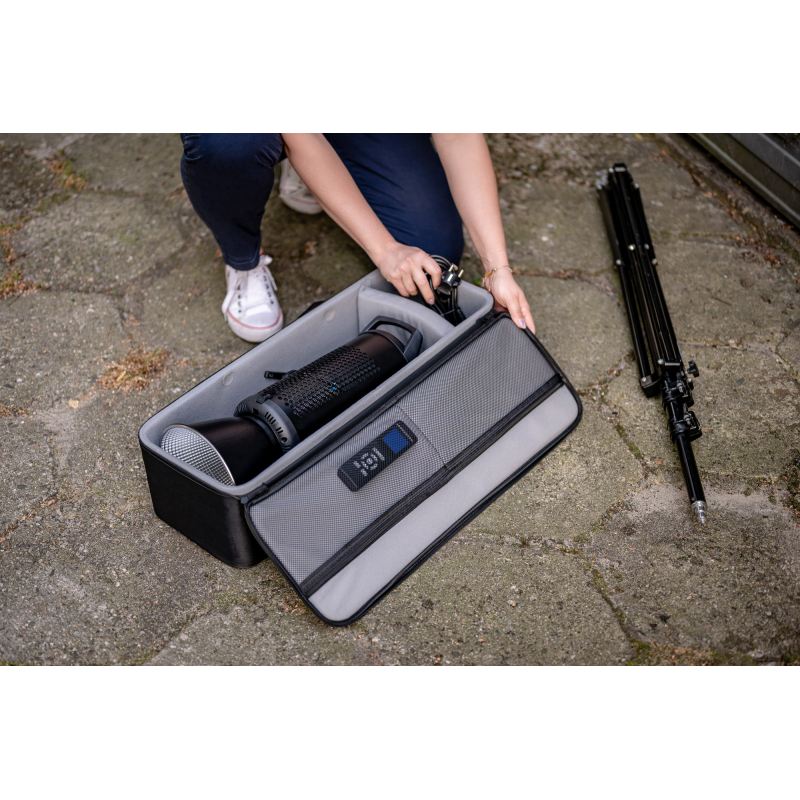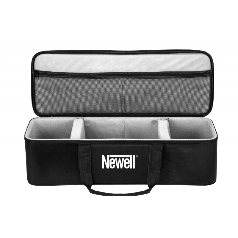 Torba transportowa Newell do lamp LED to niezawodne rozwiązanie dla fotografów, filmowców i innych twórców, którzy chcą bezpiecznie przewozić swój sprzęt. Wykonana z grubej, miękkiej pianki skutecznie chroni lampy i akcesoria przed wstrząsami, a delikatna wyściółka zapobiega zarysowaniom. Dzięki dwóm przegrodom na rzepy możesz łatwo dostosować wnętrze do swoich potrzeb, oddzielając poszczególne urządzenia lub akcesoria. Torba jest kompatybilna z lampami Newell Mitra i Surja, ale z powodzeniem pomieści również mniejsze panele LED i inny sprzęt foto-video. W klapie znajdziesz dwie siatkowe kieszenie na drobne akcesoria. Solidne suwaki i wygodne uchwyty zapewnią komfortowy transport w niemal każdych warunkach. Produkt objęty 40-miesięcznym programem wsparcia Newell.
