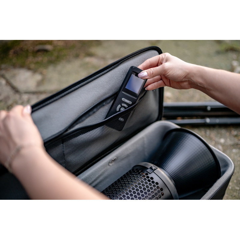 Torba transportowa Newell wyróżnia się solidną, sztywną konstrukcją, która skutecznie ochroni Twój sprzęt nawet w trudnych warunkach. Gruba warstwa pianki tworzy wewnętrzny stelaż, dzięki czemu całość zachowuje swój kształt i nie zapada się do środka. Lampy, panele LED i inne akcesoria pozostają bezpiecznie na swoim miejscu, a torba nie ugina się pod ciężarem sprzętu. To idealne rozwiązanie dla osób, które często przewożą delikatne urządzenia i chcą mieć pewność, że będą one dobrze zabezpieczone.