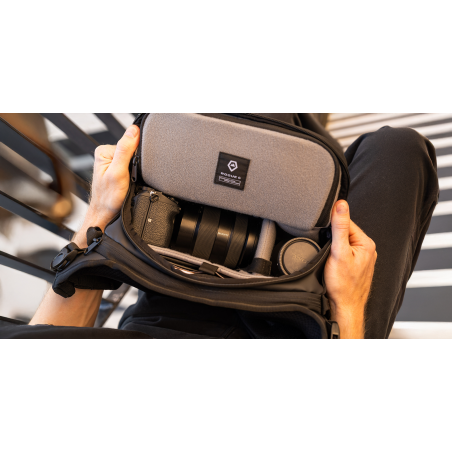 Wandrd Rogue Sling 6 l v2 to przykład na to, że torba dla fotografa nie musi być nudna, ani zarezerwowana tylko do transportowania do sprzętu foto-video. Dzięki elastycznemu układowi wnętrza i dyskretnym kieszeniom, równie dobrze sprawdzi się jako niezbędnik EDC na miasto, uczelnię, czy weekendowy wyjazd. Możesz ją skonfigurować jako minimalistyczny zestaw z laptopem i aparatem lub jako codzienny organizer z miejscem na przekąski, notes i power bank. A co najważniejsze – zawsze będziesz wyglądać dobrze, niezależnie od tego, gdzie ją zabierzesz.