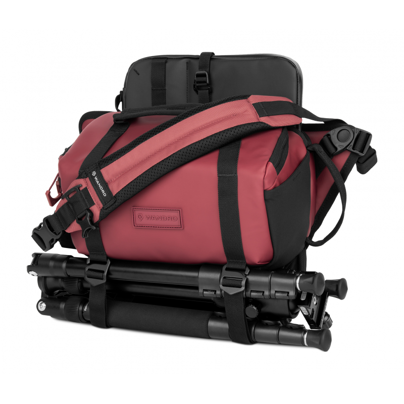 W dolnej części torby Wandrd Rogue Sling 6 l v2 znajdziesz specjalny rozkładany rękaw, który pomieści statyw lub dużą butelkę wody. Gdy dodatkowa przestrzeń nie jest Ci potrzebna, możesz go łatwo złożyć. Producent nie zapomniał też o paskach z regulacją, które umożliwiają przypięcie zrolowanej kurtki, bluzy lub małego statywu. To świetne rozwiązania, gdy masz zamiar zabrać więcej, ale nie chcesz poświęcać przestrzeni dostępnej wewnątrz torby.