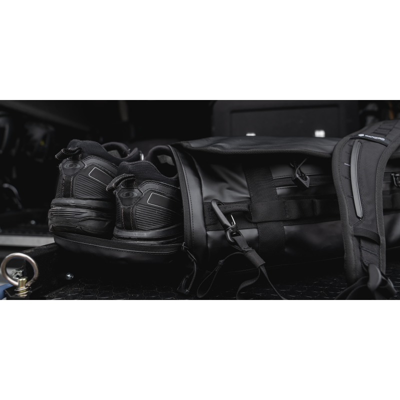 Komora na buty lub brudną odzież pozwala oddzielić mokre, lub noszone już rzeczy od reszty bagażu. W zależności od Twoich potrzeb kieszeń może, ale nie musi, zajmować przestrzeni w głównej sekcji torby. To idealne rozwiązanie po treningu, wycieczce czy dniu w terenie. Minimalistom zapewnia higienę bez konieczności sięgania po dodatkowe torby, a bardziej wymagającym – świetną bazę do dalszej organizacji.