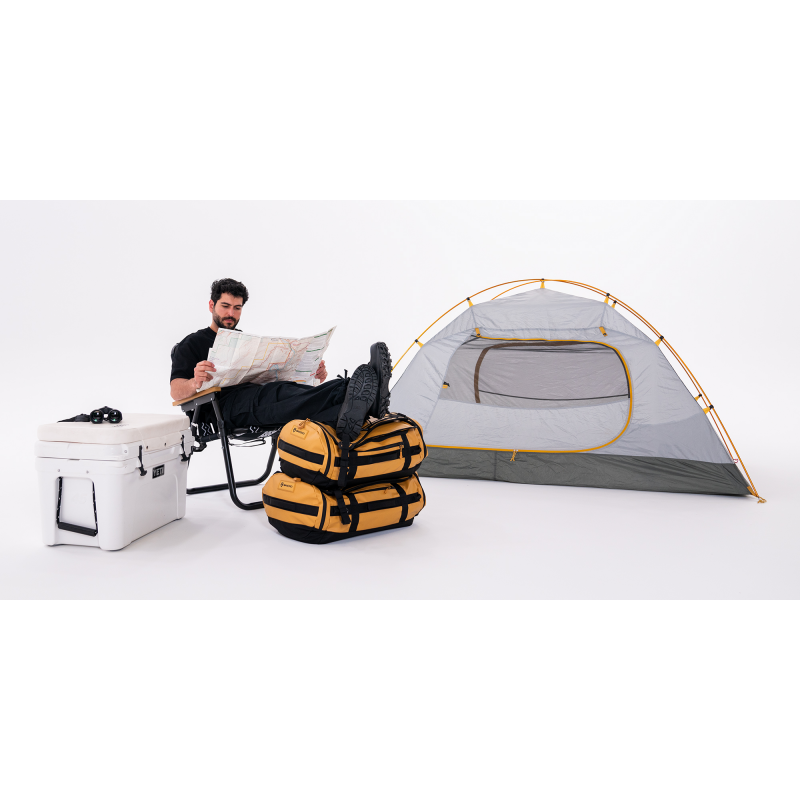Główny materiał, z którego wykonana jest torba Wandrd Carryall Duffel 60 l to tkanina P900D z powłoką PVC – sprawdzony standard stosowany przez Wandrd. Jest odporny na przetarcia i niesprzyjające warunki. Spód torby wzmacnia nylon balistyczny 840D, który zwiększa trwałość bez zbędnego obciążenia bagażu. W połączeniu z bryzgoszczelnymi zamkami i solidnymi uchwytami torba sprawdza się wszędzie tam, gdzie inne zawodzą, niezależnie od intensywności użytkowania.