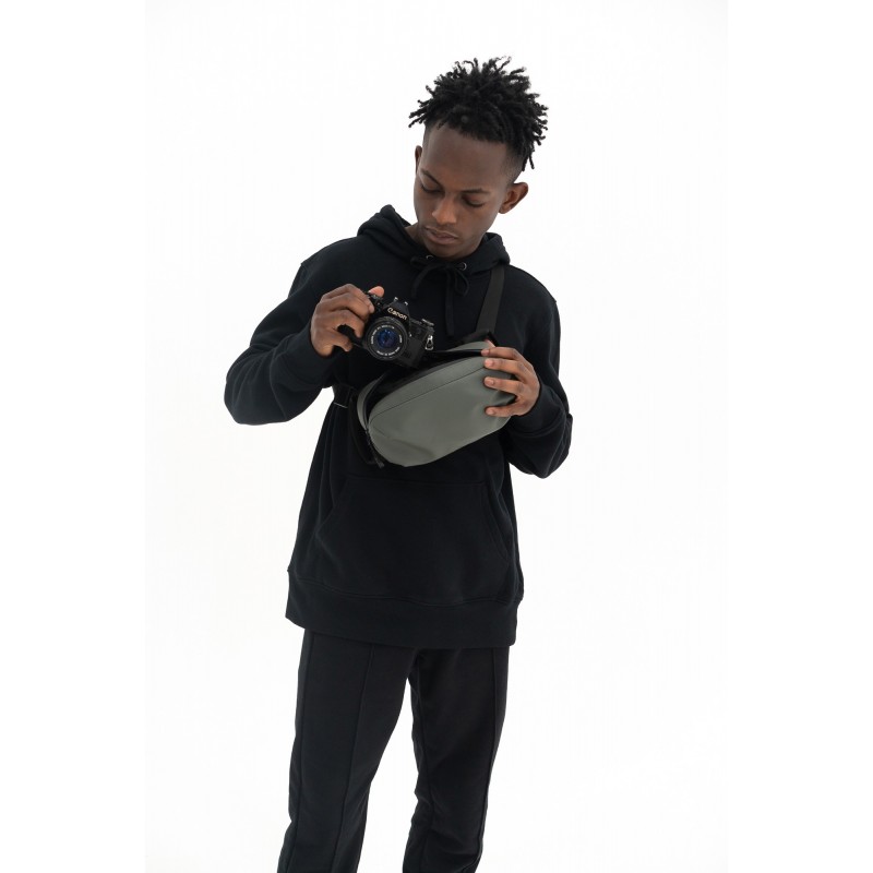 Wandrd D1 Fanny Pack to mała, uniwersalna torba o pojemności 2,5 l. Z łatwością pomieści niewielki aparat fotograficzny, etui ładujące z bezprzewodowymi słuchawkami, portfel, dokumenty, klucze, smartfon, karty pamięci i inne drobne akcesoria. Wykonano ją z wysokiej jakości materiałów odpornych na trudne warunki atmosferyczne. Główną kieszeń zabezpieczono również bryzgoszczelnym zamkiem błyskawicznym YKK. Możesz przewiesić ją przez ramię, nosić w poprzek tułowia lub umieścić na biodrach. W jej wnętrzu znajdziesz wiele przegródek, a także specjalny zaczep na klucze. Nie zabrakło też dodatkowej zapinanej kieszeni na dokumenty lub gotówkę. Torba Wandrd D1 Fanny Pack objęta jest dożywotnią gwarancją producenta.