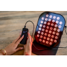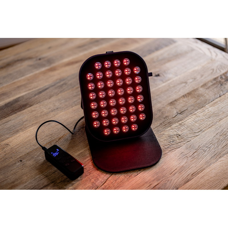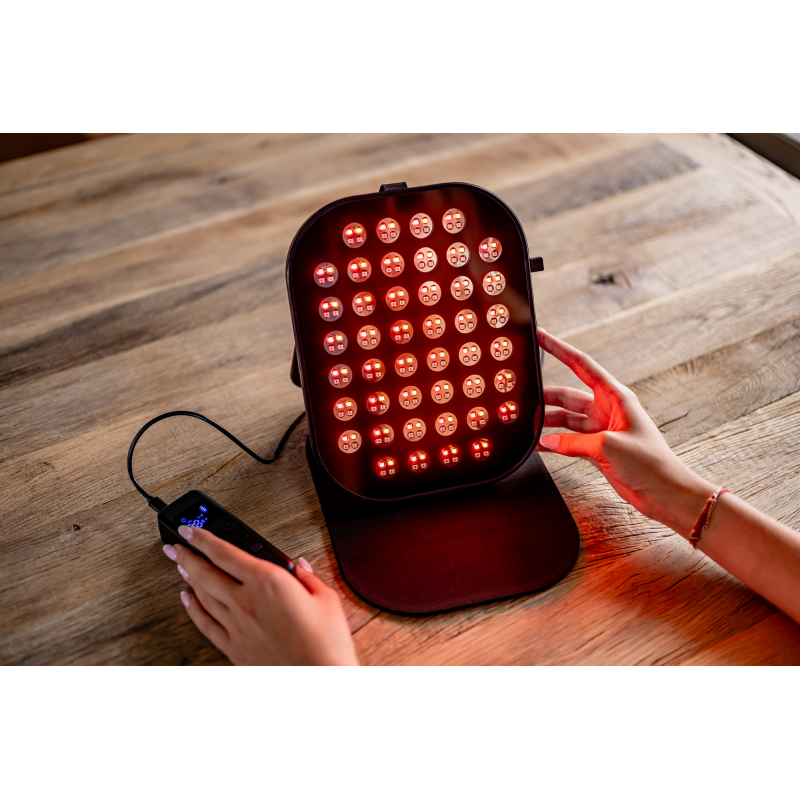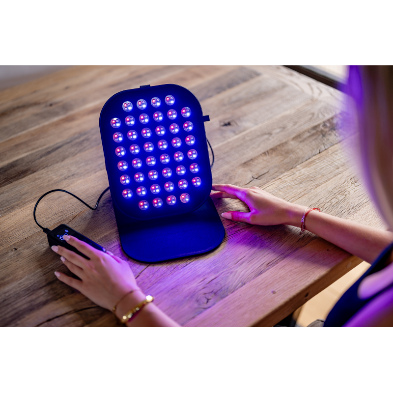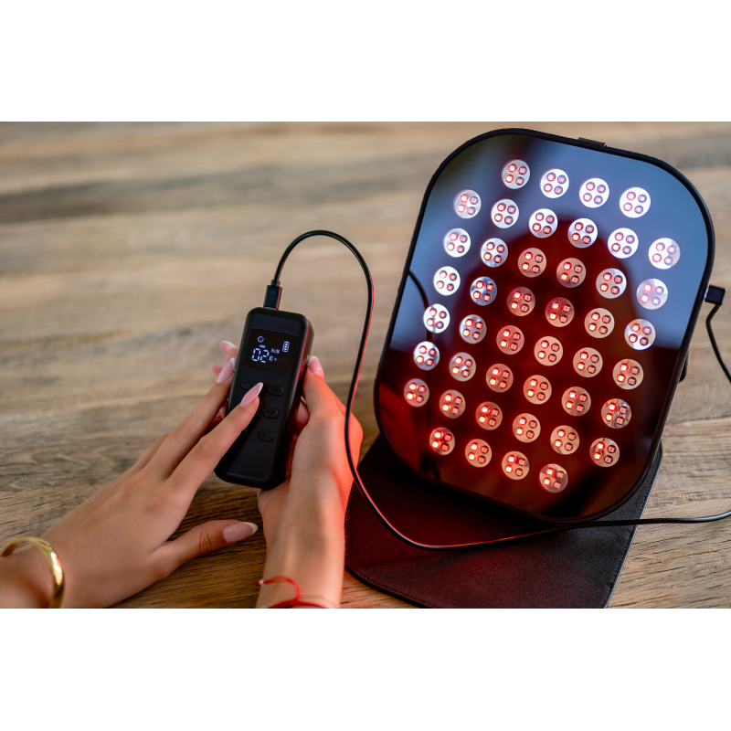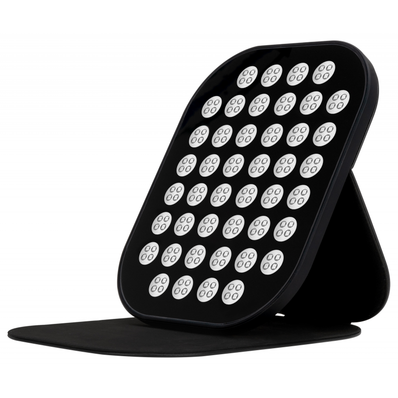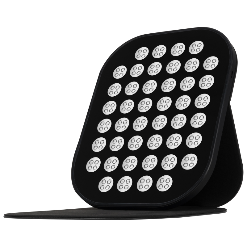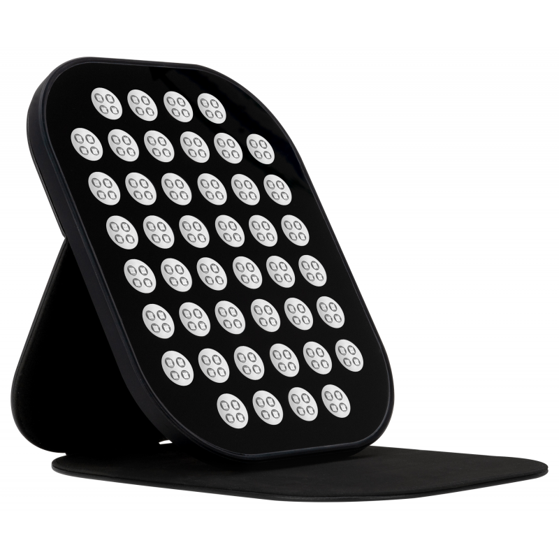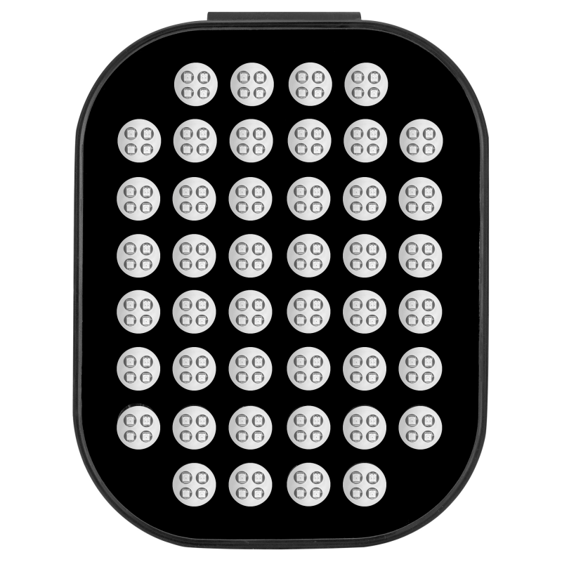 Panel Humanas LumiCare wykorzystuje aż 220 diod LED, podzielonych na 44 sekcje. Światło rozchodzi się równomiernie, obejmując szeroki obszar twarzy lub ciała bez konieczności bezpośredniego kontaktu ze skórą. Silikonowa ramka nie tylko chroni komponenty i ułatwia rozłożenie panelu, ale też zapewnia trwałość i bezpieczeństwo podczas użytkowania. To przemyślana konstrukcja, która sprawdza się zarówno w pozycji leżącej, jak i ustawiona na podstawce.