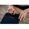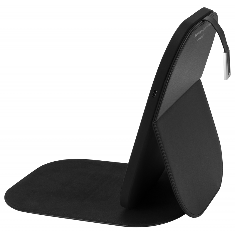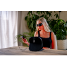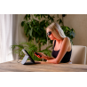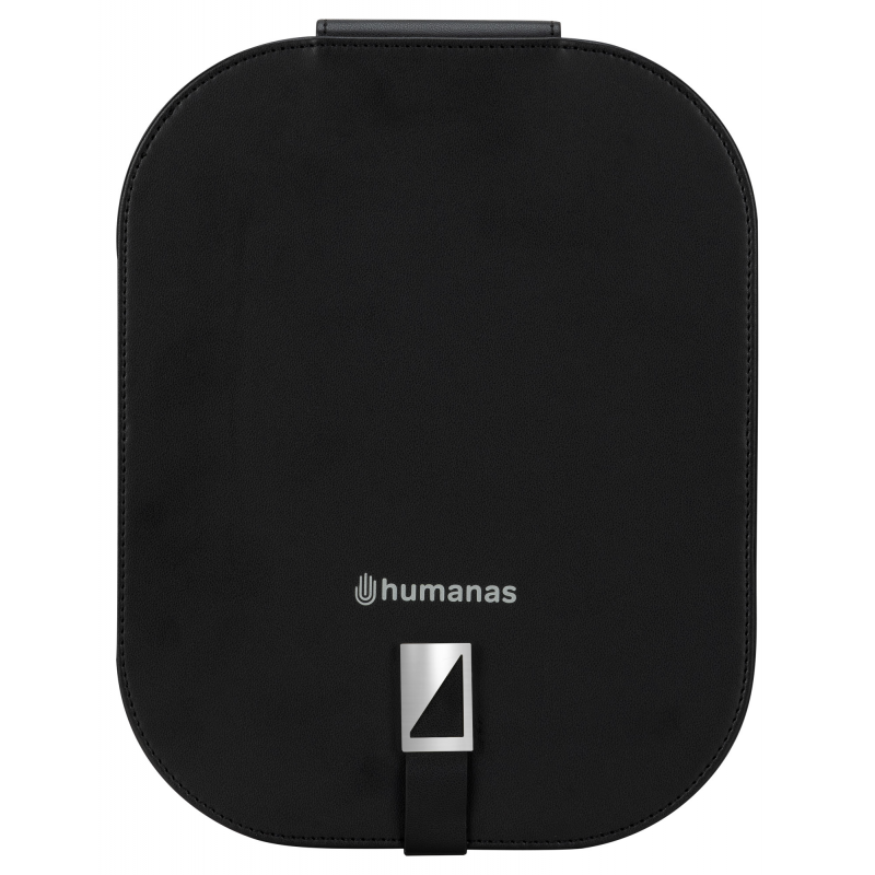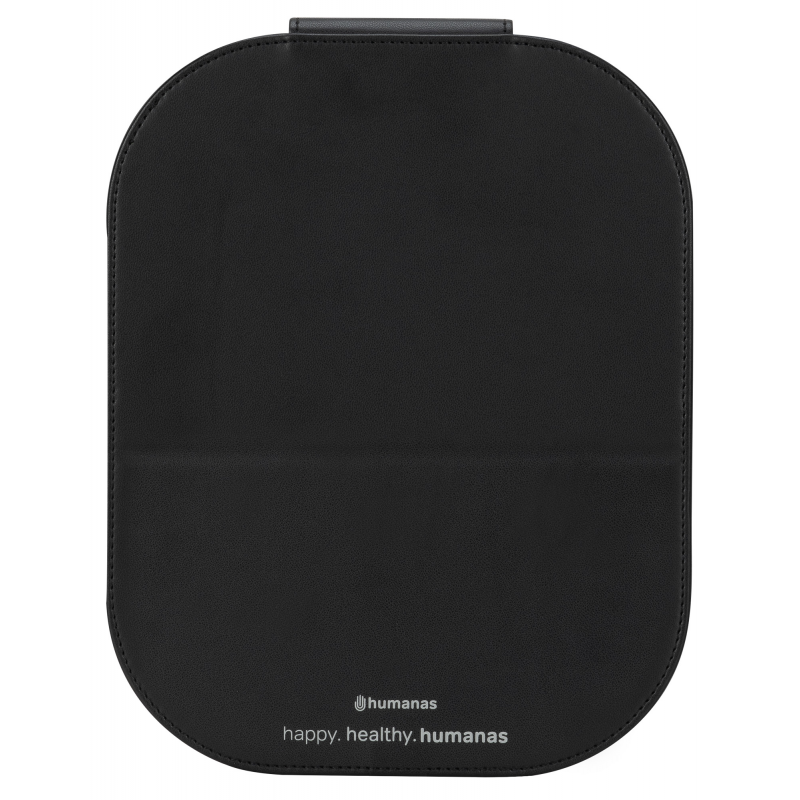 Panel LED Humanas LumiCare zamknięto w eleganckim, zintegrowanym etui, które na pierwszy rzut oka przypomina luksusowe lusterko kosmetyczne. Materiał imitujący skórę nadaje całości stylowy wygląd, a metalowa klamra z magnetycznym zapięciem zapewnia odpowiednie bezpieczeństwo w transporcie. Po otwarciu etui tylna część służy jako stabilna podstawka, umożliwiająca wygodne ustawienie panelu pod odpowiednim kątem. To nie tylko praktyczne rozwiązanie, ale też dowód na to, że funkcjonalność może iść w parze z estetyką.