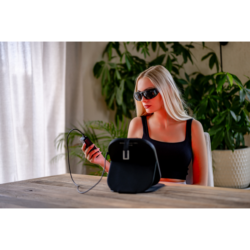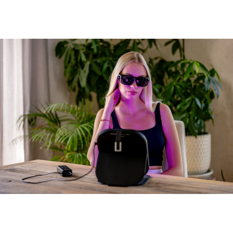 W zestawie z panelem Humanas LumiCare znajdziesz też specjalne okulary ochronne, które zabezpieczają oczy przed światłem emitowanym przez diody LED. To szczególnie ważne podczas korzystania z trybów zawierających światło niebieskie lub bliską podczerwień, które mogą być drażniące przy dłuższej ekspozycji. Okulary są lekkie, wygodne i łatwo się je zakłada. Wystarczy chwila, by zapewnić sobie pełne bezpieczeństwo i komfort w trakcie sesji.