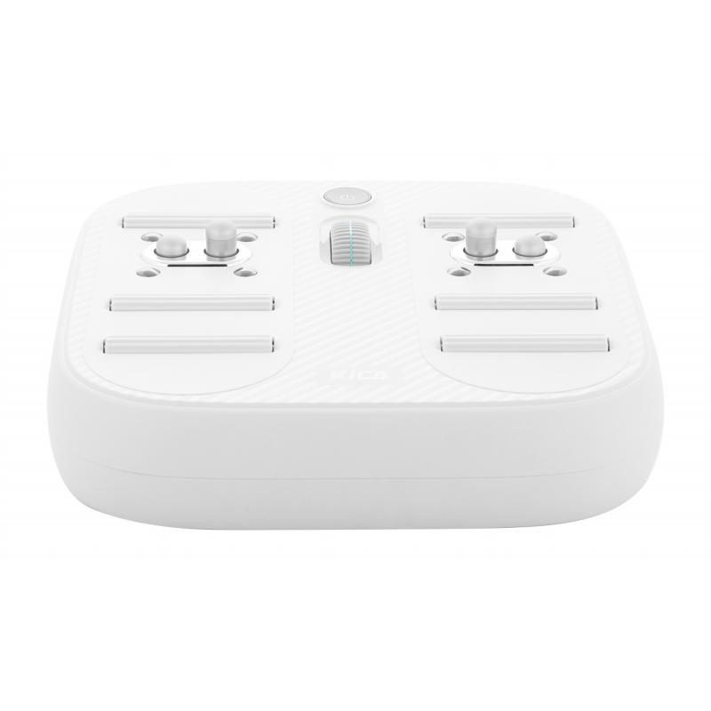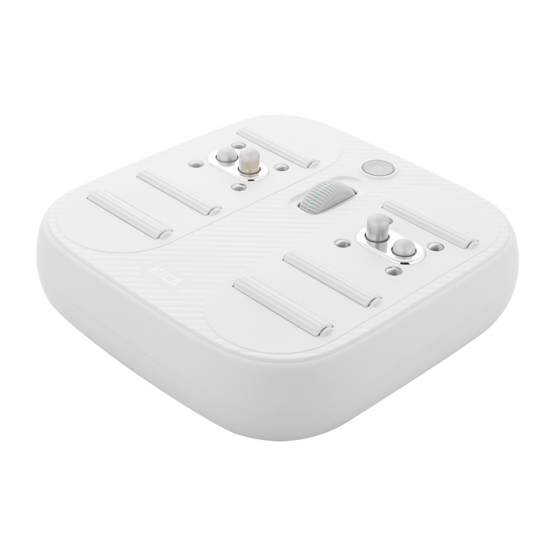 Specjalna rolka umieszczona w centralnej części masażera KiCA umożliwia wygodną kontrolę urządzenia bez konieczności schylania się. Jeden ruch stopy wystarczy, aby zwiększyć lub zmniejszyć intensywność zabiegu. Urządzenie oferuje 2 tryby pracy, które automatycznie zmieniają się po osiągnięciu określonej prędkości ruchu głowic.