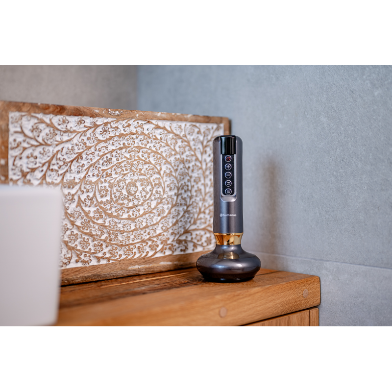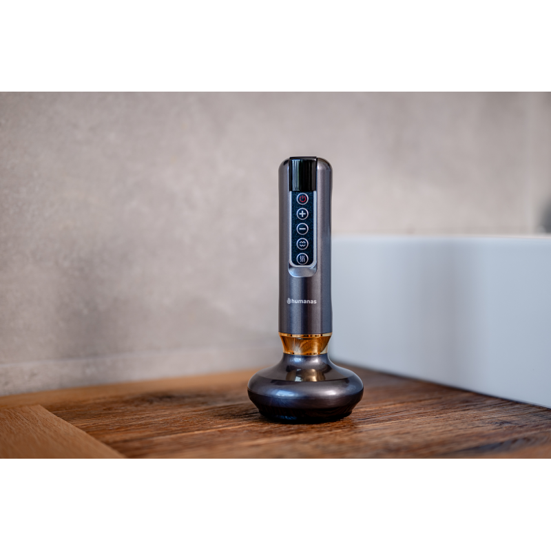 Dzięki funkcji bańki chińskiej, jaką oferuje masażer Humanas DermaSmooth odkryjesz uwspółcześnioną wersję starożytnej techniki Gua Sha ("scraping"). Przesuwane po skórze urządzenie twory podciśnienie i pobudza krążenie krwi, co ułatwia usuwanie toksyn z organizmu, poprawiając tym samym zdrowie i ogólny stan skóry. Scraping może również pomóc w łagodzeniu bólu i napięcia, szczególnie w przypadku przewlekłych dolegliwości mięśniowo-szkieletowych. Masaż Gua Sha poprawia również funkcjonowanie układu limfatycznego i odpornościowego, a także wzmacnia układ nerwowy.