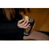 Korek wykonany ze stali nierdzewnej to solidne i nowoczesne rozwiązanie, które gwarantuje trwałość i odporność na uszkodzenia. Jego pomarańczowe wykończenie świetnie komponuje się z resztą butelki, nadając jej minimalistyczny, a zarazem elegancki charakter. Do korka przymocowano również sznurek, który ułatwia przenoszenie butelki i zabezpiecza ją podczas transportu – czy to w plecaku, czy w dłoni. To niewielki, ale praktyczny detal zwiększający komfort codziennego użytkowania KiCA Hydro Glass.