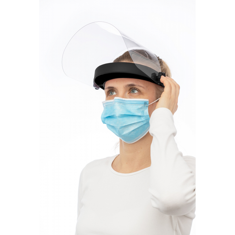 Przyłbica ochronna z daszkiem FHC M1 skutecznie osłoni usta, nos oraz oczu istotnie zmniejszając ryzyko kontaktu z wirusami i drobnoustrojami.
