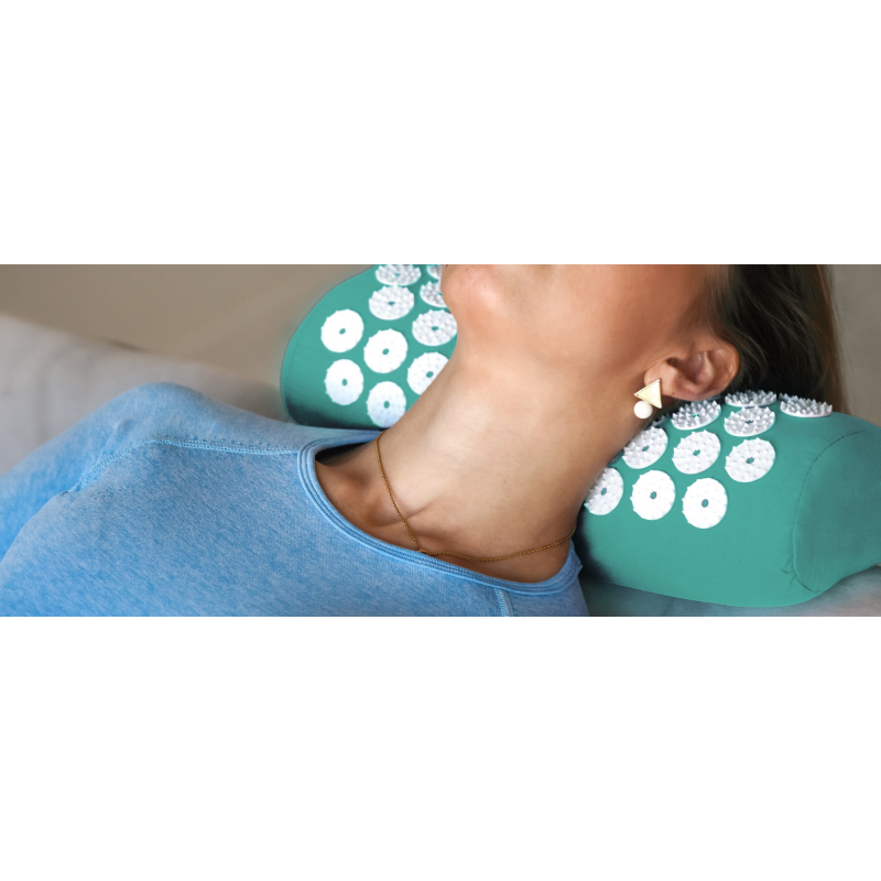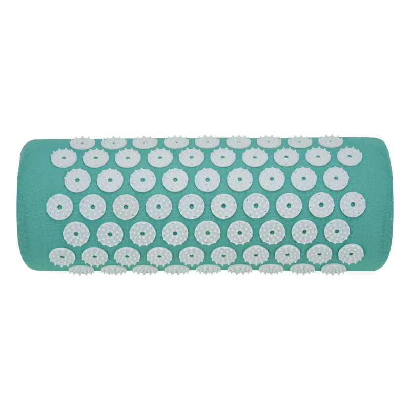 Dołączona do zestawu poduszka o wymiarach 39 x 15 cm została wyposażona w 66 okrągłych rozet z kolcami. Działa ona na podobnej zasadzie co mata, oferując skuteczne oddziaływanie na punkty akupresury w okolicach szyi, karku i głowy. Dzięki niej możesz cieszyć się głębokim odprężeniem i ulgą w bólu podczas krótkich sesji relaksacyjnych, które mogą odbywać się w domu lub w pracy.