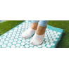 Okrągłe rozety z kolcami, które w równomierny sposób rozmieszczono na macie do akupresury KiCA AuraSpike oraz na dołączonej do zestawu poduszce, stanowią kluczowy element zestawu. Stworzono je z tworzywa bezpiecznego dla Twojej skóry. Mata została wyposażona w 230 rozet z kolcami, natomiast poduszka oferuje ich aż 66. Ostre, a zarazem nieco stępione wypustki gwarantują komfort i bezpieczeństwo użytkowania. Dzięki precyzyjnemu rozmieszczeniu i starannemu wykonaniu kolce skutecznie stymulują ciało, zapewniając lepsze ukrwienie.